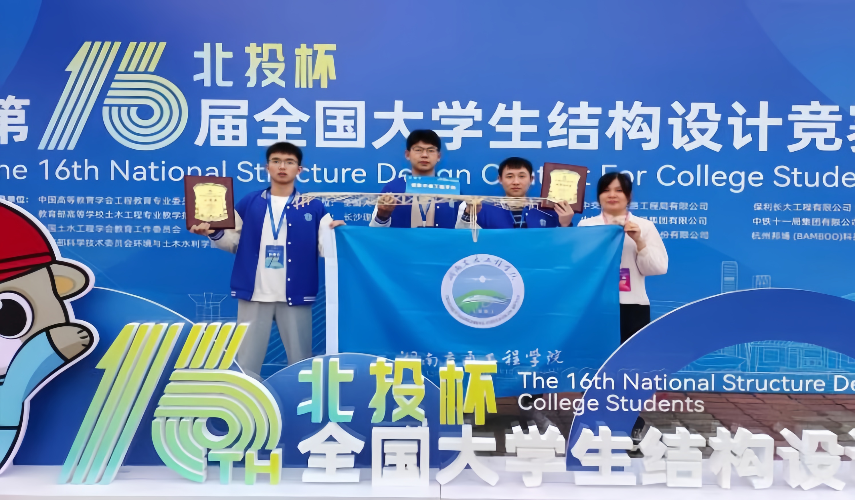 本網(wǎng)訊(通訊員 趙紅深 陳偉明)10月26日至29日,“北投杯”第十六屆全國大學生結(jié)構(gòu)設(shè)計競賽在長沙理工大學舉行。我校鄭明、涂宇老師指導的20級土木工程專業(yè)學生段傳忠、吳晨鵬、楊長波組成的參賽隊伍,歷經(jīng)四天的激烈角逐,喜獲全國一等獎,我校獲優(yōu)秀組織獎。