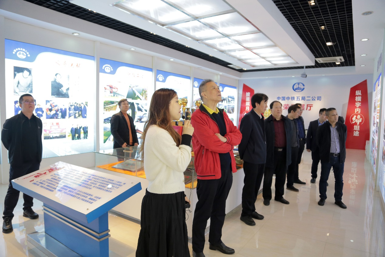 陳治亞等一行先參觀了中鐵五局二公司榮譽(yù)室,在講解員介紹下,詳細(xì)了解公司的起源、發(fā)展以及獲得榮譽(yù)成就等情況。