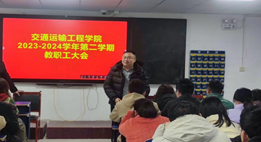 2024年3月7日下午15:00,交通運(yùn)輸工程學(xué)院2023-2024學(xué)年第二學(xué)期教職工大會(huì)在機(jī)電樓512召開,出席本次會(huì)議的有交通運(yùn)輸工程學(xué)院院長羅迎社、副院長涂宇、副院長鄭哲文、黨支部書記何美生、副書記何文華以及全院教師,本次會(huì)議由院長羅迎社主持。