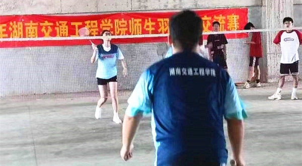 本次羽毛球師生交流賽由湖南交通工程學(xué)院體育教研室組織,教研室主任熊阿鳳擔(dān)任領(lǐng)隊,老師與學(xué)生組隊競技較量與切磋。學(xué)校名譽校長劉平娥、黨委副書記馮良貴、副校長劉義倫等校領(lǐng)導(dǎo)到場觀賽。