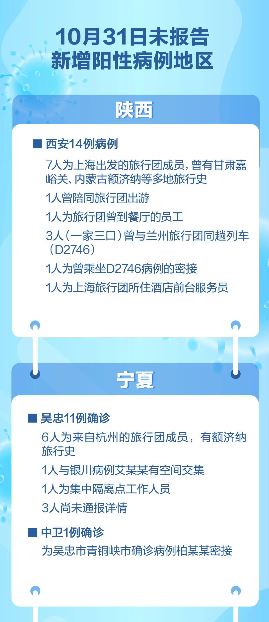 此外,黑龍江哈爾濱、黑河,江西上饒和浙江杭州等地10月31日也報告新增陽性病例: