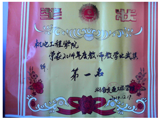 2014年12月,在學(xué)院隨堂教學(xué)比武中,我院派選了馮小康、李波波兩位老師參加,獲得了一等獎、二等獎各一名,并獲得了集體獎第一名的好成績。