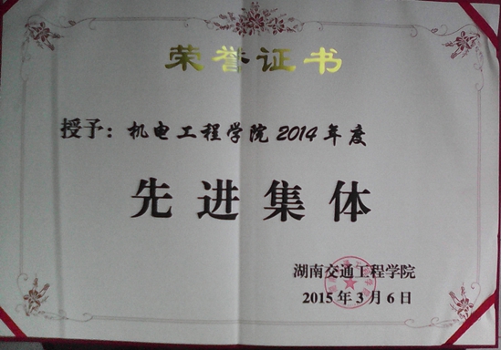 我院在學(xué)院二十多個部門2014-2015年度考核評比中,獲得先進(jìn)集體光榮稱號。