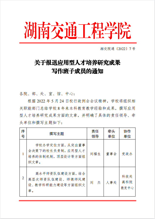 關(guān)于報(bào)送應(yīng)用型人才培養(yǎng)研究成果寫(xiě)作班子成員的通知