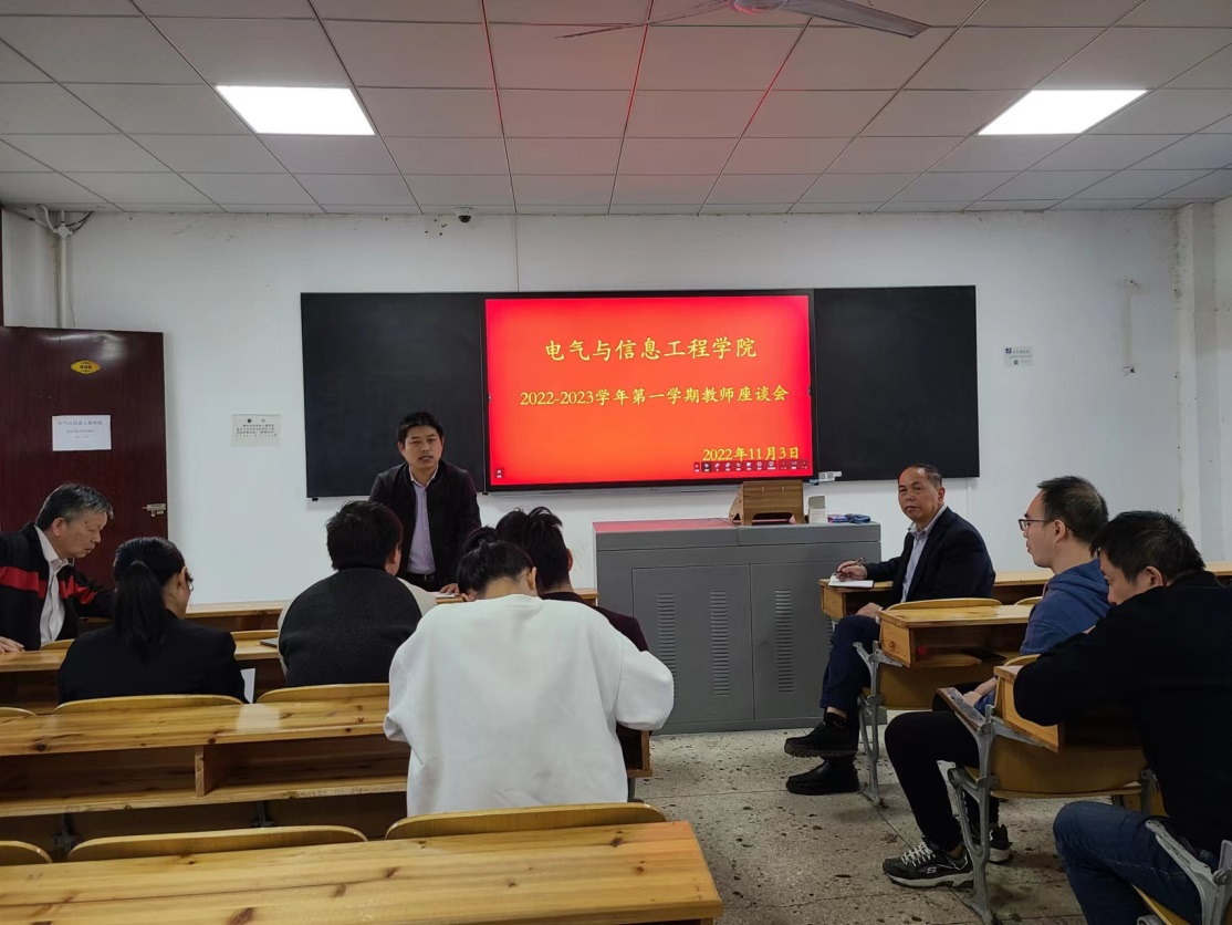 2022年11月3日下午16:30-17:30在教學(xué)樓606召開了電氣與信息工程學(xué)院2022-2023學(xué)年第一學(xué)期教師座談會,我院28名教師代表參加了此次座談會,與會領(lǐng)導(dǎo)有電信學(xué)院院長楊兵初、學(xué)院書記劉忠明、學(xué)院常務(wù)副院長范雙南、教學(xué)副院長曾平紅及教務(wù)處處長曹中一參加了此次座談會。