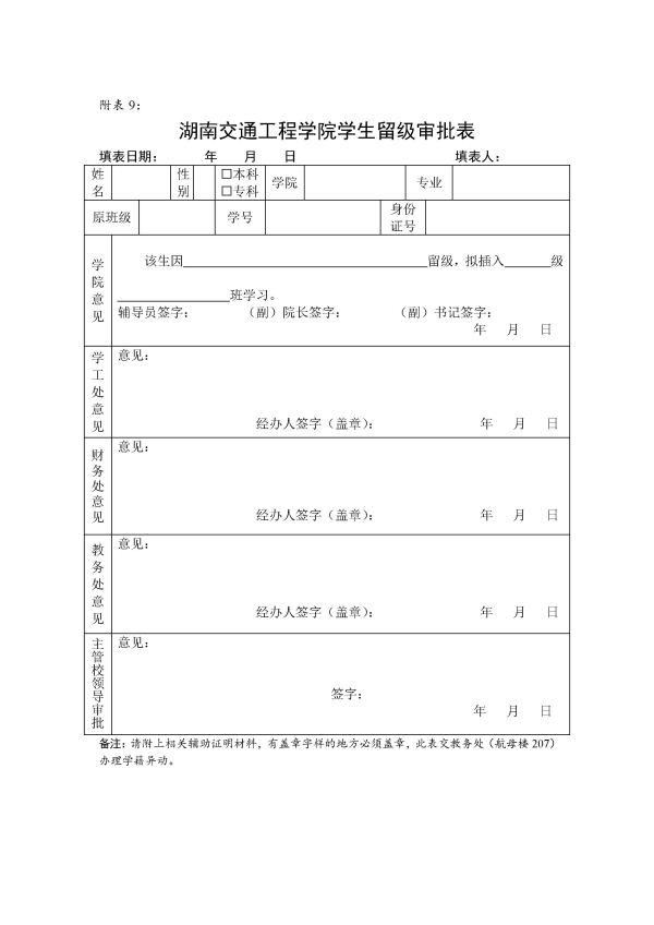 湖南交通工程學(xué)院學(xué)生留級(jí)審批表