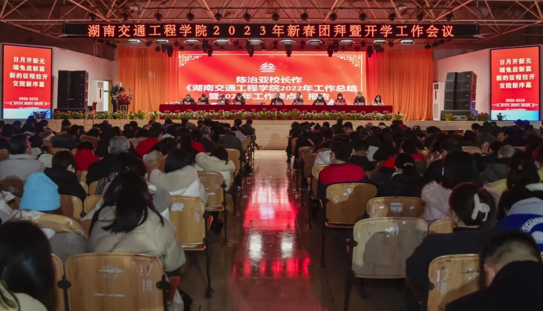 2月8日,湖南交通工程學(xué)院舉行2023年新春團(tuán)拜暨開學(xué)工作會(huì)。董事長劉福生、校長陳治亞、黨委書記劉文君等全體校領(lǐng)導(dǎo)與全校教職員工參加。
