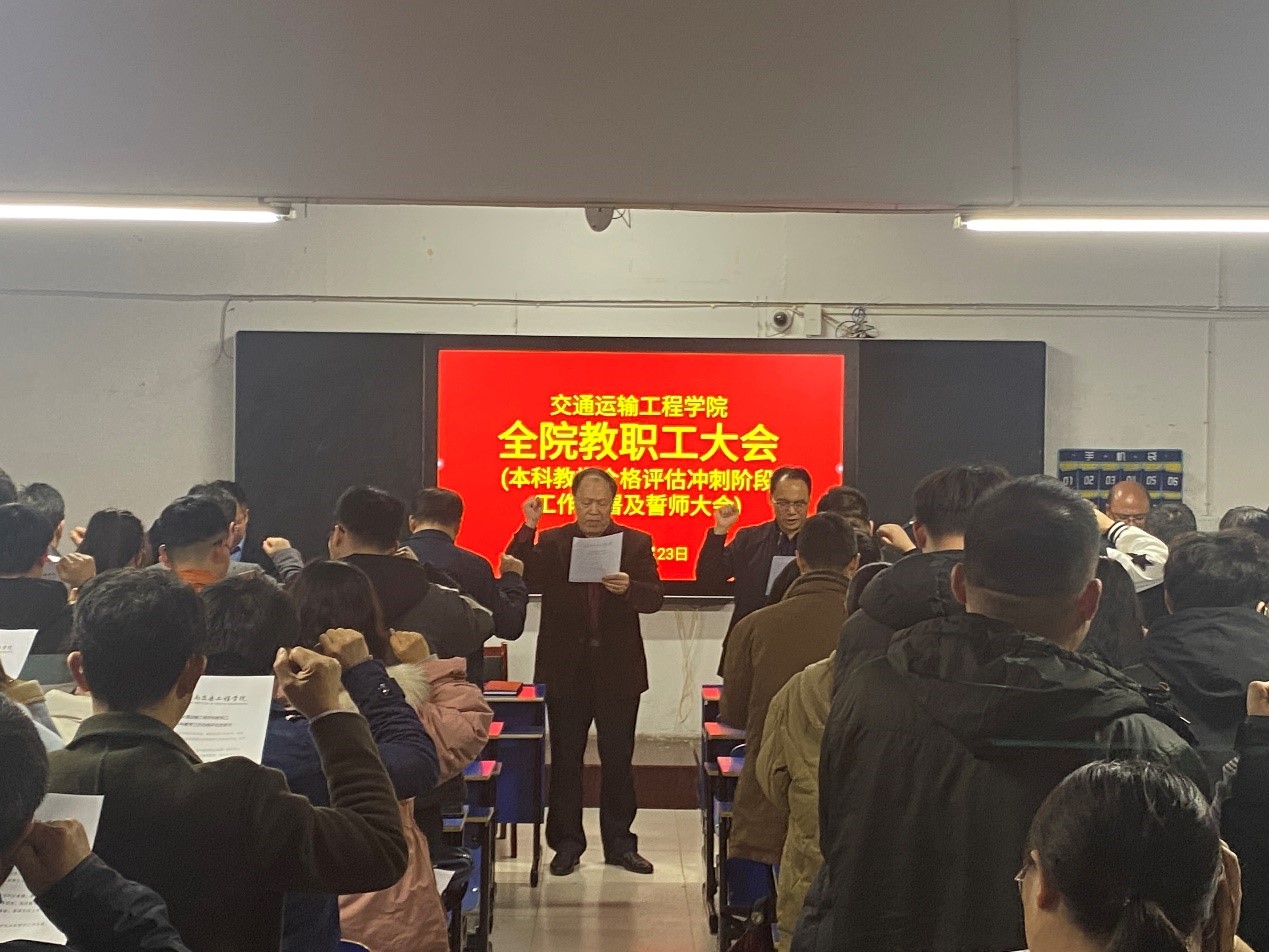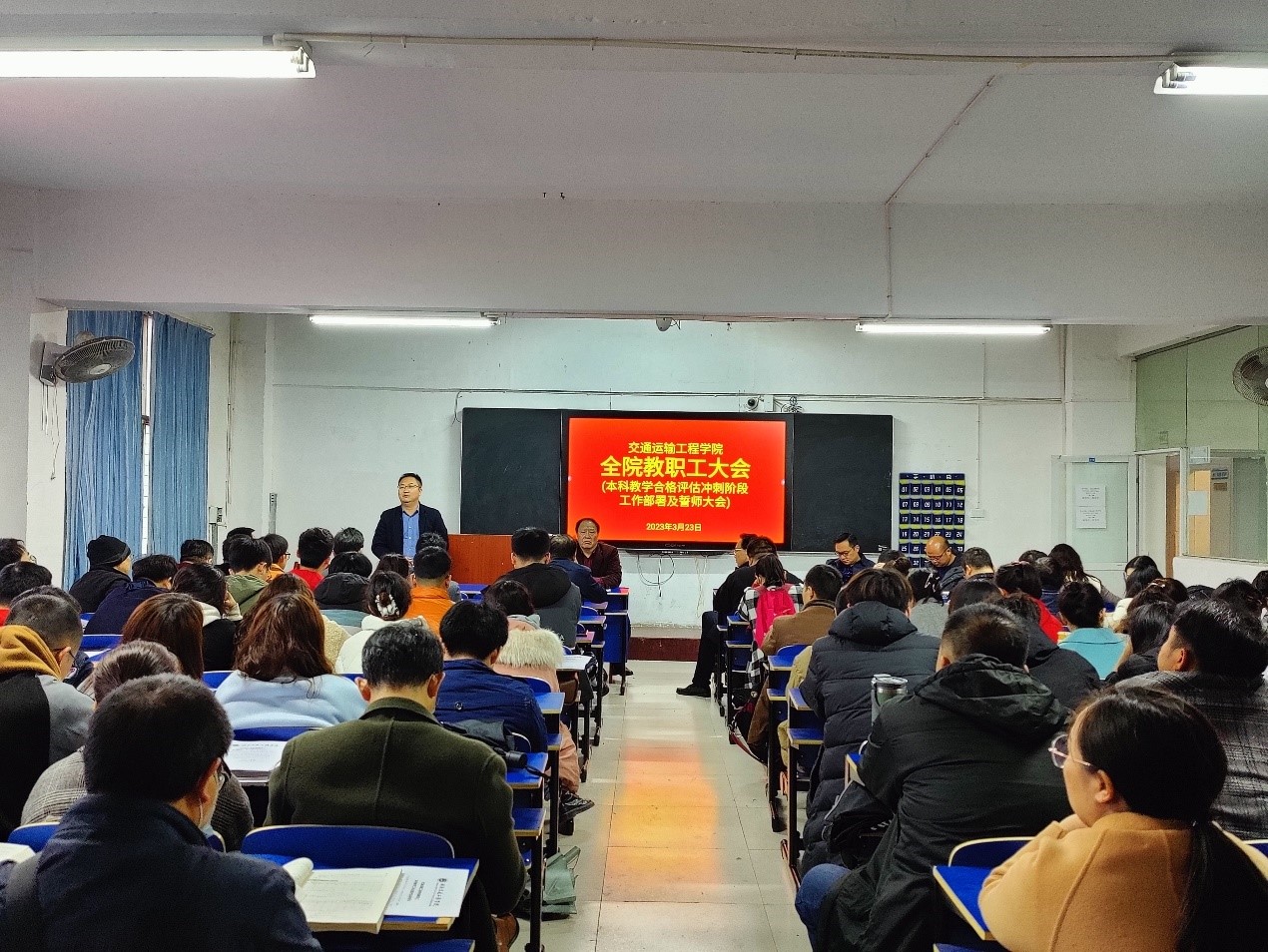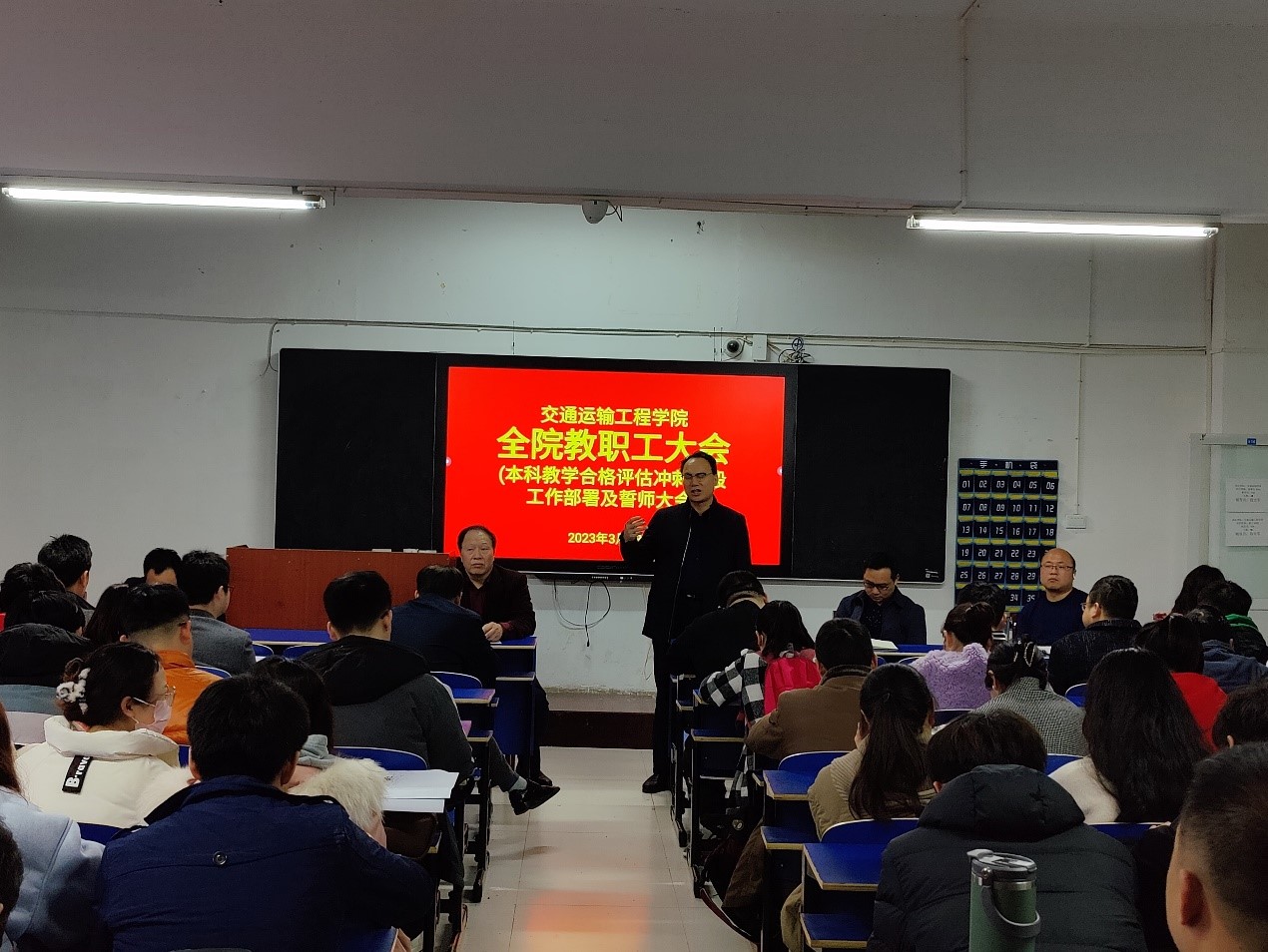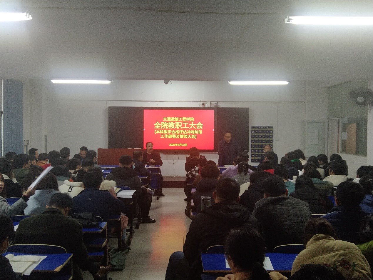 2023年3月23日下午16:15,交通運(yùn)輸工程學(xué)院全院教職工大會(huì)(本科教學(xué)合格評估沖刺階段工作部署及誓師大會(huì))在機(jī)電樓516召開,出席本次會(huì)議的有交通運(yùn)輸工程學(xué)院院長羅迎社、書記何美生、副院長涂宇、副院長鄭哲文、副書記何文華、全院教師以及輔導(dǎo)員和實(shí)驗(yàn)員。