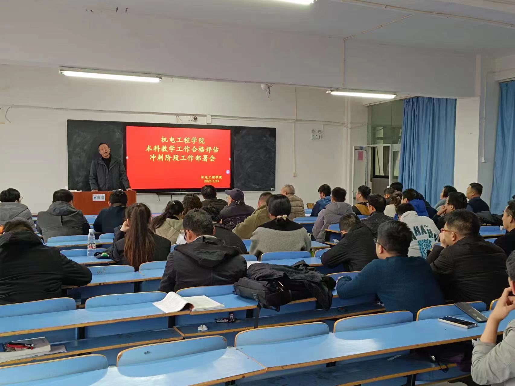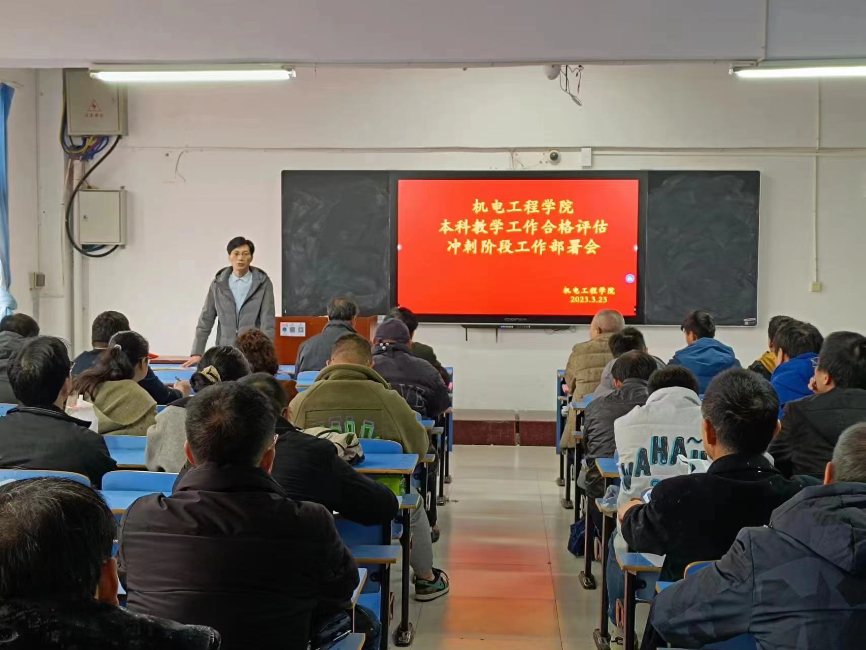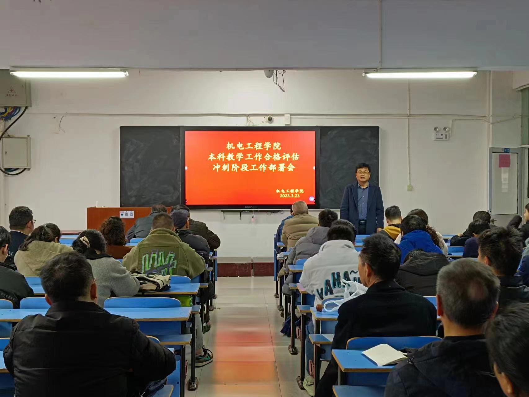 為響應(yīng)學(xué)校召開的本科教學(xué)合格評估工作部署會議要求,2023年3月25日機(jī)電工程學(xué)院在機(jī)電樓410教室召開了全院教職工大會(本科教學(xué)合格評估沖刺階段工作部署會),以問題為導(dǎo)向,集全院師生合力整改整頓問題,凝聚全院師生所有力量進(jìn)行沖刺整改,為迎接正式教學(xué)水平合格評估努力工作,貢獻(xiàn)自己的最大力量!