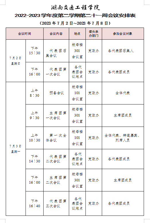 湖南交通工程學(xué)院2022-2023學(xué)年度第二學(xué)期第二十一周會(huì)議安排表