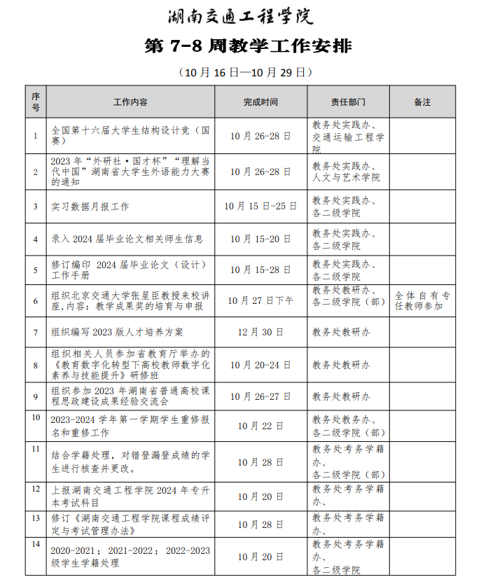 第7-8周教學工作安排