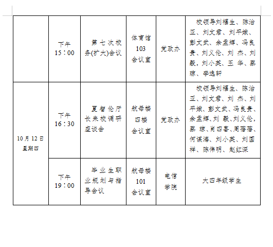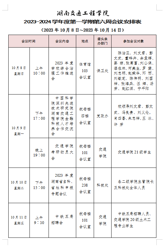 湖南交通工程學(xué)院 2023-2024學(xué)年度第一學(xué)期第六周會(huì)議安排表
