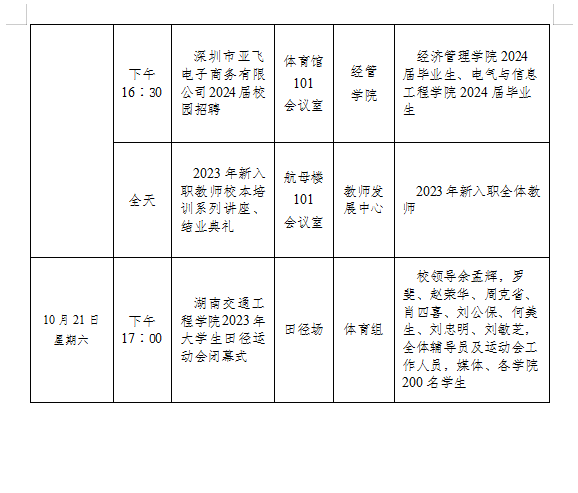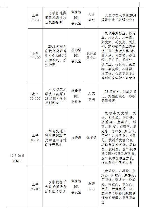 湖南交通工程學(xué)院 2023-2024學(xué)年度第一學(xué)期第六周會(huì)議安排表