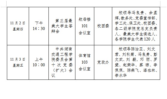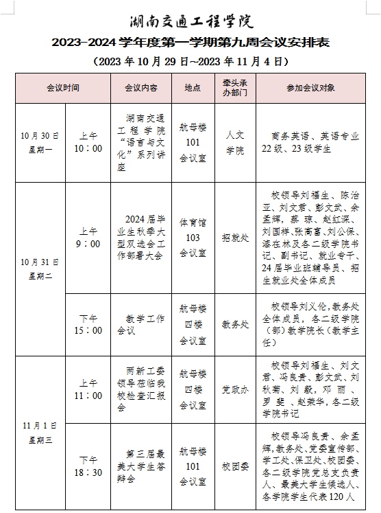 湖南交通工程學(xué)院 2023-2024學(xué)年度第一學(xué)期第九周會議安排表