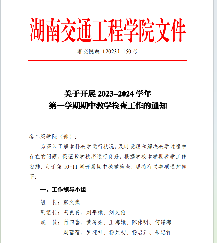 湘交院教〔2023〕150號(hào)(關(guān)于開展2023-2024學(xué)年第一學(xué)期期中教學(xué)檢查工作的通知)