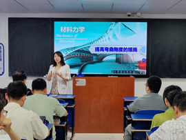 郭紅鑠講授了《材料力學(xué)》中“提高彎曲剛度的措施”內(nèi)容,授課過程中,她親切和藹、循循善誘;板書層次分明、解析深入淺出;節(jié)奏張弛有度、氛圍愉悅輕松;結(jié)合生活實(shí)踐,教學(xué)效果良好。