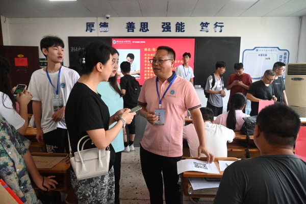董事長劉福生、執(zhí)行校長劉杰、名譽校長劉平娥、常務(wù)副校長彭文武、黨委副書記馮良貴、紀委書記劉毅、副校長余孟輝等校領(lǐng)導(dǎo)及相關(guān)部門負責人先后到報到現(xiàn)場檢查迎新工作,向新同學們送上親切的問候并表示熱烈的歡迎。在校大門入口處,校領(lǐng)導(dǎo)詢問保衛(wèi)處負責人新生報到車輛引導(dǎo)和交通秩序維護,確保校園安全;在視察各個學院的迎新展臺工作情況時,聽取各學院負責人與學生志愿者對迎新工作的介紹,提出相關(guān)工作建議,并對現(xiàn)場工作人員及志愿者致以慰問。
