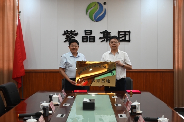 本網(wǎng)訊( 記者 攝影 趙紅深 )為加強(qiáng)與地方企業(yè)的交流,進(jìn)一步推進(jìn)校企合作,不斷提高應(yīng)用型人才培養(yǎng)質(zhì)量,9月19日上午,我校與湖南紫晶匯康生物醫(yī)藥集團(tuán)有限公司(簡稱“紫晶集團(tuán)”)共建應(yīng)用型人才培養(yǎng)基地簽約暨授牌儀式在衡陽綜合保稅區(qū)舉行。紫晶集團(tuán)董事長賀旋、黨支部書記張法吉,銷售部總監(jiān)陳艷、銷售部經(jīng)理湯莉、唐平平、陽湘云,我校副校長蔡炎斌,創(chuàng)新創(chuàng)業(yè)學(xué)院副院長、校企合作負(fù)責(zé)人李文善,經(jīng)濟(jì)管理學(xué)院院長朱忠祥、黨總支書記趙榮華、副院長王冰、國貿(mào)教研室主任王志堅參加儀式。授牌儀式由張法吉主持。