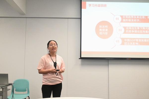 首先是各小組代表總結(jié)匯報(bào),談收獲、講體會、說感悟、做打算。譚園玲以《培訓(xùn)引領(lǐng)成長,感悟鑄就未來》為題代表第三組匯報(bào),李金梅以《適應(yīng)新變局,創(chuàng)新推進(jìn)理論與實(shí)踐教學(xué)》為題代表第四組匯報(bào),曾歌以《學(xué)以致用,篤行致遠(yuǎn)——新加坡培訓(xùn)學(xué)習(xí)心得體會》為題代表第六組匯報(bào),楊子瑤、殷永平、龔凡超和張妃四人組合以《從新加坡的變化對我們的啟示》代表第五組匯報(bào)。各組匯報(bào)代表以飽滿的熱情和嚴(yán)謹(jǐn)?shù)膽B(tài)度,融合全組人員感悟與收獲,認(rèn)真準(zhǔn)備,精彩匯報(bào)。他們圍繞《宏觀趨勢及其應(yīng)用》《新加坡和中國的銀發(fā)經(jīng)濟(jì)》《中國GDP增速放緩的結(jié)構(gòu)性原因及其影響》等主題,不僅系統(tǒng)地總結(jié)了學(xué)習(xí)期間的知識收獲與技能提升,更重要的是能夠?qū)⑺鶎W(xué)內(nèi)容與學(xué)校的發(fā)展規(guī)劃、本科教學(xué)合格評估、教育教學(xué)改革與高質(zhì)量轉(zhuǎn)型發(fā)展等工作緊密結(jié)合,提出了諸多具有前瞻性和實(shí)操性的建議。匯報(bào)圖文并茂,邏輯清晰,客觀全面,亮點(diǎn)紛呈,讓與會者深刻感受到了研修班的學(xué)習(xí)成果與實(shí)效及智慧碰撞,同時(shí)充分展示了教師們高瞻遠(yuǎn)矚的思想深度和腳踏實(shí)地的實(shí)踐精神。