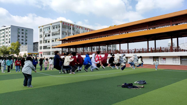 首先是團(tuán)體跳繩,長(zhǎng)長(zhǎng)的繩子在兩個(gè)搖繩人的手中有節(jié)奏地?cái)[動(dòng)著,選手們依次跳入繩中,大家齊心協(xié)力,喊著響亮的口號(hào),為了團(tuán)隊(duì)的榮譽(yù)而奮力拼搏。