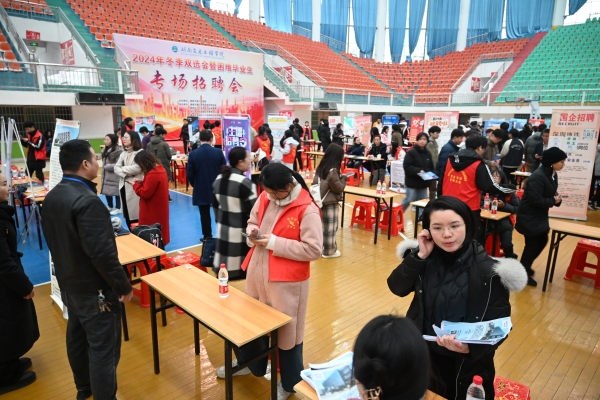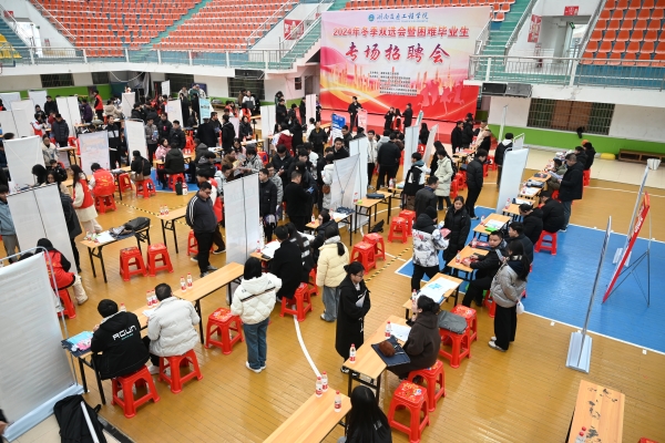 本網(wǎng)訊(通訊員 趙紅深 李水華 攝影 大學(xué)生記者團(tuán)張美琳 張海容)金風(fēng)送爽、層林盡染。為落實(shí)落細(xì)就業(yè)優(yōu)先政策,拓寬畢業(yè)生就業(yè)渠道,12月14日,我校在校體育館舉行2024年冬季雙選會(huì)暨困難畢業(yè)生專場(chǎng)招聘會(huì)。2000多名學(xué)生到場(chǎng)參會(huì),現(xiàn)場(chǎng)投遞簡(jiǎn)歷1856份,初步達(dá)成意向300余人。常務(wù)副校長彭文武到會(huì)指導(dǎo)。