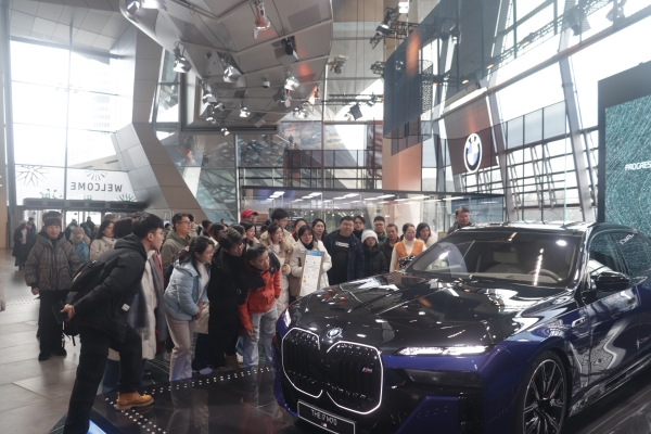 在寶馬世界主展廳,陳列著寶馬各系列車型,涵蓋豪華轎車、高性能跑車、純電動(dòng)車及混合動(dòng)力車等,最新電動(dòng)車型BMW iX尤為引人注目,其出色的續(xù)航和智能駕駛輔助系統(tǒng)引發(fā)教師們的高度關(guān)注。教師們與寶馬資深員工朱拜爾?阿拉姆(Jubair Alam)先生深入交流,朱拜爾先生詳細(xì)介紹了寶馬當(dāng)下在新能源領(lǐng)域的積極布局,包括全力推進(jìn)電動(dòng)車型研發(fā)與市場推廣,計(jì)劃在未來實(shí)現(xiàn)電動(dòng)車銷量顯著增長,同時(shí)加緊混合動(dòng)力車型研發(fā)以滿足多元市場需求。
