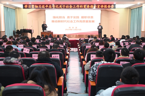12月25日上午,衡陽(yáng)市社會(huì)工作部副部長(zhǎng)劉華文來(lái)我校作社會(huì)工作宣講報(bào)告,傳達(dá)學(xué)習(xí)習(xí)近平總書(shū)記對(duì)社會(huì)工作作出的重要指示精神和中央社會(huì)工作會(huì)議精神。校黨委書(shū)記劉文君主持報(bào)告會(huì)。