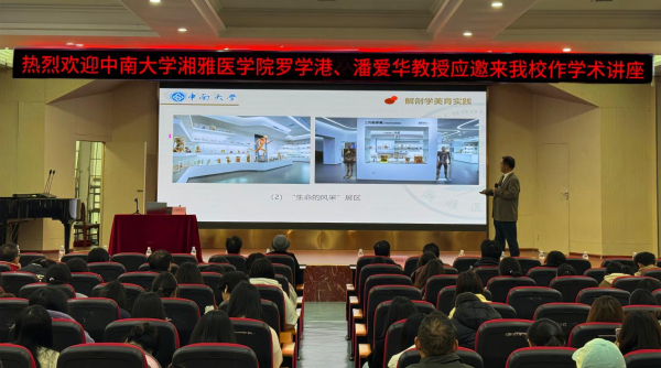 本網(wǎng)訊(通訊員 李水華 劉建軍)11月21日下午,中南大學(xué)湘雅醫(yī)學(xué)院博士生導(dǎo)師、國家教學(xué)名師羅學(xué)港教授,基礎(chǔ)醫(yī)學(xué)院形態(tài)實(shí)驗(yàn)中心主任、湖南省解剖學(xué)會理事長潘愛華教授,南華大學(xué)衡陽醫(yī)學(xué)院人體形態(tài)中心主任周小兵教授受邀來我校作學(xué)術(shù)講座,醫(yī)學(xué)技術(shù)與護(hù)理學(xué)院300余名師生聆聽這一場精彩紛呈的學(xué)術(shù)盛宴。