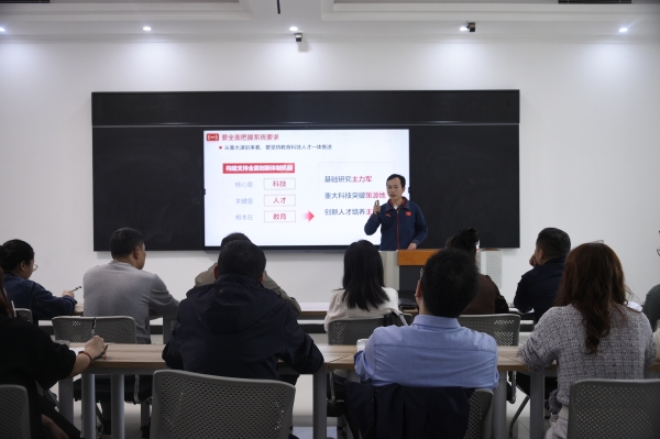 本網(wǎng)訊(通訊員 范睿庭 )10月31日下午,學校黨委書記劉文君在航母樓301就“繪就全面深化教育綜合改革新藍圖—學習貫徹黨的二十屆三中全會精神”進行了深入宣講。此次宣講會旨在引導全院教職工黨員和學生黨員把思想和行動統(tǒng)一到黨的二十屆三中全會精神上來,全面貫徹黨的教育方針,以樹人為核心,以立德為根本,將思想政治工作貫穿學校辦學治校各領域、教育教學各環(huán)節(jié)、人才培養(yǎng)各方面。