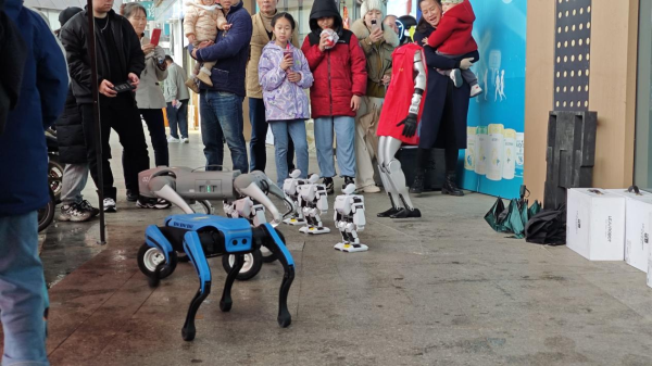 在科技創(chuàng)新展區(qū),學(xué)生團隊攜“智能垃圾分類助手”“模塊化太陽能充電器”等12項原創(chuàng)作品亮相。其中,“再生材料3D打印工坊”吸引近百名居民駐足,通過廢舊塑料再生為耗材的全流程演示,直觀展現(xiàn)環(huán)??萍槛攘?;樂聚人形機器人編隊以毫米級同步精度演繹科技舞蹈,宇樹四足機械狗靈活翻越障礙,現(xiàn)場觀眾爭相體驗平板操控機械狗穿越障礙的樂趣。