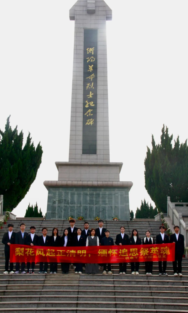 2025 年4 月3 日下午三點,機電工程學院開展“緬懷革命先烈,弘揚民族精神”清明節(jié)祭掃活動。本次活動由機電工程學院黨總支副書記、團總支書記辛敬鳳帶領(lǐng)何立權(quán)老師、劉曉珍老師,兩會一中心學生干部,來到衡陽市烈士陵園,開啟了一場觸動心靈的致敬英烈之行。