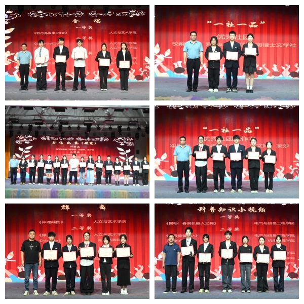 漆在林宣讀了《湖南交通工程學(xué)院關(guān)于 第十一屆湖南省青年文化藝術(shù)節(jié)比賽 校內(nèi)選拔賽評選結(jié)果的通報》《關(guān)于表彰 2024-2025 學(xué)年“一社一品”活動 “優(yōu)秀社團”和“優(yōu)秀社團工作者”的決定》。學(xué)校領(lǐng)導(dǎo)分批次為獲獎集體和個人頒獎。