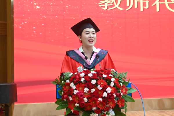 四年師友昨日成追憶,千里之行今朝正起航。教師代表人文與藝朮學(xué)院姚丹丹老師為畢業(yè)生寄語。她希望同學(xué)們帶著母校誠(chéng)摯的祝福和殷切的期望,以從容的步伐踏上人生新的征程。牢記“厚德、善思、強(qiáng)能、篤行”校訓(xùn),不斷學(xué)習(xí)新知識(shí)、新技術(shù),為祖國(guó)建設(shè)添磚加瓦,做新時(shí)代的奮斗者、克難者、開拓者。
