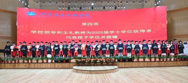 在莊嚴(yán)的學(xué)位授予儀式上,2025屆畢業(yè)生們身著學(xué)士服,依次走上主席臺(tái);主席臺(tái)上主禮教授們?yōu)楂@得學(xué)士學(xué)位的學(xué)生代表撥正流蘇,頒發(fā)學(xué)士學(xué)位證書,并親切握手,逐一合影。飽滿的流蘇里有甜蜜、有艱辛,沉甸甸的證書里是青春、是奮斗。這一刻,他們的臉上洋溢著自豪和喜悅,手中的證書不僅是對(duì)他們學(xué)術(shù)成果的認(rèn)可,更是他們?nèi)松缕碌囊娮C。