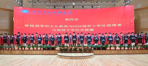 學(xué)校學(xué)位評(píng)定委員會(huì)副主席、常務(wù)副校長(zhǎng)彭文武宣讀《湖南交通工程學(xué)院關(guān)于2025屆本科生畢業(yè)生學(xué)士學(xué)位授予名單的決定》。根據(jù)國(guó)家教育部和湖南省教育廳相關(guān)規(guī)定,經(jīng)審核,我校2025屆共有3785名同學(xué)獲得畢業(yè)資格,準(zhǔn)予畢業(yè);共有3453名同學(xué)符合學(xué)士學(xué)位授予條件,授予學(xué)士學(xué)位。