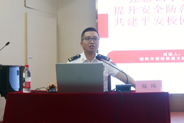 講座特邀衡陽市消防救援支隊(duì)技術(shù)服務(wù)大隊(duì)隊(duì)長鄭瑋作專題報告。他以《強(qiáng)意識學(xué)常識練技能,提升安全防范管理水平,共建平安校園》為題,結(jié)合近年來發(fā)生的典型火災(zāi)案例,通過圖文并茂的形式,深入剖析了學(xué)校消防安全存在的突出風(fēng)險點(diǎn),系統(tǒng)講解了火災(zāi)預(yù)防、隱患排查、火場自救等方面的專業(yè)知識。鄭隊(duì)長還現(xiàn)場演示了消防器材的正確使用方法,并重點(diǎn)介紹了緊急情況下的逃生技巧和注意事項(xiàng)。整場講座內(nèi)容詳實(shí)、案例生動、深入淺出,極具針對性和實(shí)用性,有效提升了師生的消防安全理論素養(yǎng)和應(yīng)急處置能力。