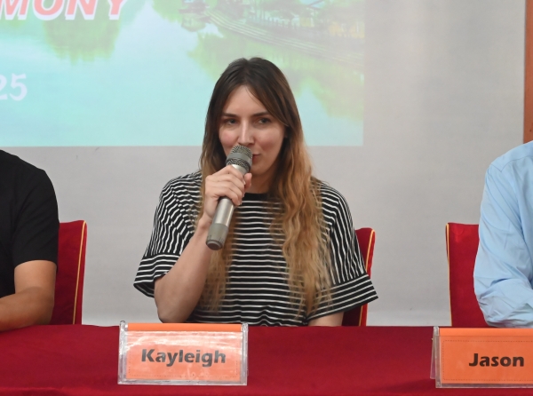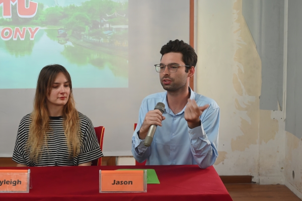 歐達(dá)全英文介紹了大學(xué)生實(shí)訓(xùn)行程安排。他指出,我們的社會實(shí)踐活動有明確的目標(biāo)和詳細(xì)的行程計(jì)劃,有系統(tǒng)的組織和嚴(yán)格的管理。我們要采訪外國友人,舉行英語之夜,要開展快樂徒步,對話山水間,考察特色民居文化;讓學(xué)生走“出去”,把外國人請“進(jìn)來”,共同舉行燒烤晚會,感恩相遇。從知識探索到實(shí)踐體驗(yàn)的多元安排引發(fā)熱烈期待。