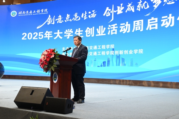陳衡在講話中表示,湖南交通工程學(xué)院作為扎根湖湘的應(yīng)用型本科高校,將雙創(chuàng)教育貫穿人才培養(yǎng)全過程,構(gòu)建“理論教學(xué)+實(shí)踐鍛煉+項(xiàng)目孵化”育人模式,培育了一批優(yōu)質(zhì)創(chuàng)業(yè)項(xiàng)目,榮獲多項(xiàng)省級以上獎(jiǎng)項(xiàng),以扎實(shí)行動(dòng)體現(xiàn)了高校服務(wù)青年、服務(wù)地方的使命擔(dān)當(dāng)。他指出,創(chuàng)業(yè)是時(shí)代發(fā)展的引擎,湖南省正致力于構(gòu)建一個(gè)可持續(xù)的創(chuàng)業(yè)生態(tài),用心培育每一顆“金種子”,今日的傾力支持,必將換來明日“金果子”的碩果累累。以此次創(chuàng)新創(chuàng)業(yè)活動(dòng)周為契機(jī),他提出三點(diǎn)希望:一是希望學(xué)校持續(xù)深化雙創(chuàng)教育改革,在匯聚導(dǎo)師、融合資源等方面持續(xù)創(chuàng)新,進(jìn)一步激發(fā)學(xué)生創(chuàng)新創(chuàng)業(yè)活力,為湖南教育事業(yè)和經(jīng)濟(jì)社會(huì)發(fā)展培育更多“雙創(chuàng)”人才;二是希望青年學(xué)子勇?lián)鷷r(shí)代創(chuàng)業(yè)使命,個(gè)人理想融入家鄉(xiāng)建設(shè)與國家發(fā)展,積極在科技創(chuàng)新、鄉(xiāng)村振興、社會(huì)服務(wù)等領(lǐng)域?qū)ふ覄?chuàng)業(yè)機(jī)遇。三是希望社會(huì)各界匯聚雙創(chuàng)支持合力,通過項(xiàng)目合作、資金扶持、導(dǎo)師輔導(dǎo)等多種形式,為大學(xué)生創(chuàng)業(yè)提供全程助力,共同營造“鼓勵(lì)創(chuàng)新、寬容失敗、支持創(chuàng)業(yè)”的良好氛圍。