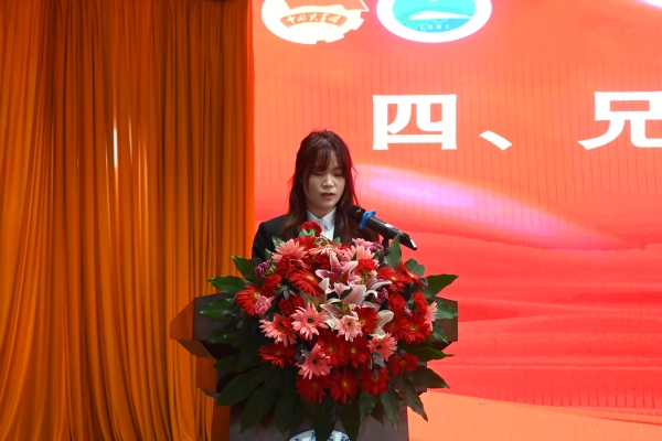 高校代表雍思楊在賀信中說到,他謹(jǐn)代表各兄弟院校學(xué)生會(huì)和南華大學(xué)青年學(xué)生向大會(huì)的召開表示熱烈的祝賀。也熱忱期盼兩校青年學(xué)生能在兩校學(xué)生會(huì)組織的引領(lǐng)下,深化交流合作、攜手并肩前進(jìn)。在科技創(chuàng)新、志愿服務(wù)、社會(huì)實(shí)踐等領(lǐng)域開展更多務(wù)實(shí)合作,將個(gè)人發(fā)展匯入國(guó)家藍(lán)圖,努力成為“志存高遠(yuǎn)、勇?lián)厝?、?jiān)韌不拔、奮發(fā)向前”的新時(shí)代青年。讓青春在服務(wù)國(guó)家戰(zhàn)略、建設(shè)美麗湖南的實(shí)踐中綻放絢麗之花。