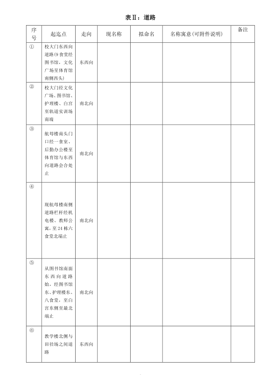 5.基建辦負(fù)責(zé)此次活動附件校園道路、建筑物、景觀范圍、數(shù)量及平面圖內(nèi)容提供。各責(zé)任部門在規(guī)定時間內(nèi)將征集到的名稱方案統(tǒng)一匯總提交黨委宣傳部。