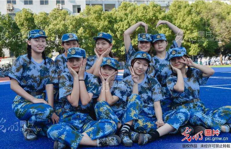 2021年9月3日,湖南交通工程學(xué)院2021級新生在軍訓(xùn)休息時間創(chuàng)意動作留下青春的身影。