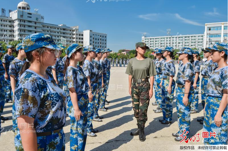 2021年9月3日,湖南交通工程學(xué)院軍訓(xùn)教官在給軍訓(xùn)新生講解動作要領(lǐng)并糾正動作。