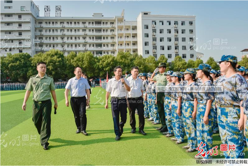 2021年9月17日,湖南交通工程學(xué)院田徑場(chǎng),伴隨著雄壯的進(jìn)行曲,在副校長(zhǎng)彭文武、余孟輝及學(xué)工處副處長(zhǎng)劉海濱的陪同下,董事長(zhǎng)劉福生逐一檢閱軍訓(xùn)方陣。響亮的口號(hào)聲氣勢(shì)如虹,久久回蕩。