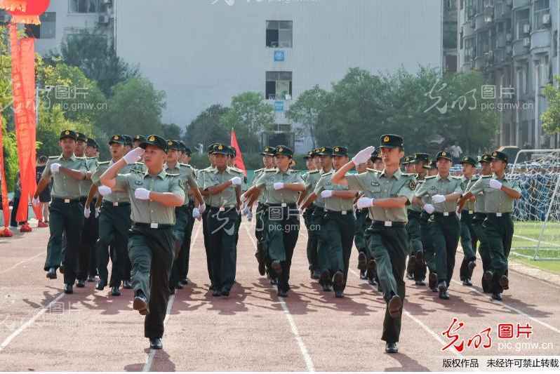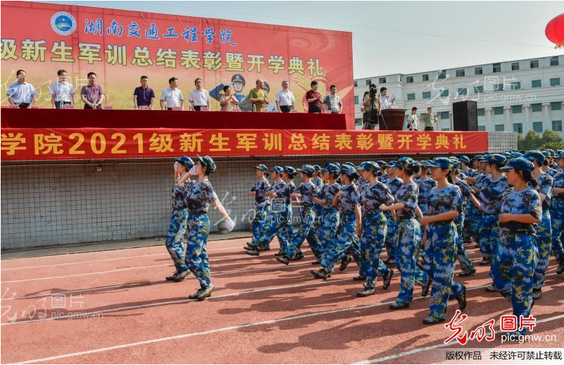 光明網(wǎng)客戶(hù)端9月18日訊(通訊員 李建華)2021年9月17日,湖南交通工程學(xué)院2021級(jí)新生軍訓(xùn)總結(jié)表彰暨開(kāi)學(xué)典禮在學(xué)校田徑場(chǎng)舉行,4000余名新生一展青春風(fēng)采,精彩的匯報(bào)表演贏得在場(chǎng)領(lǐng)導(dǎo)及老師的熱烈掌聲和滿(mǎn)意笑容。
