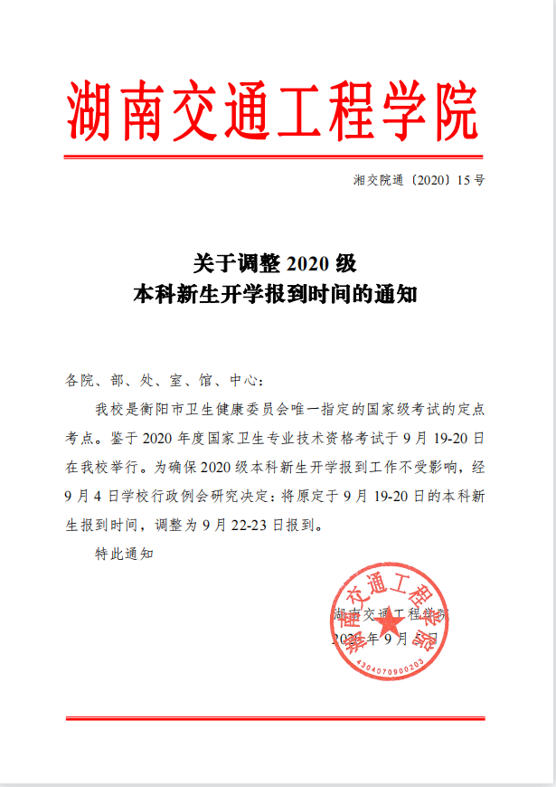 關于調(diào)整2020級本科新生開學報到時間的通知