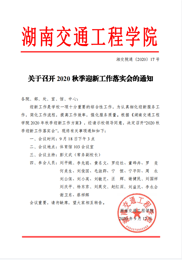 關(guān)于召開2020秋季迎新工作落實(shí)會(huì)的通知