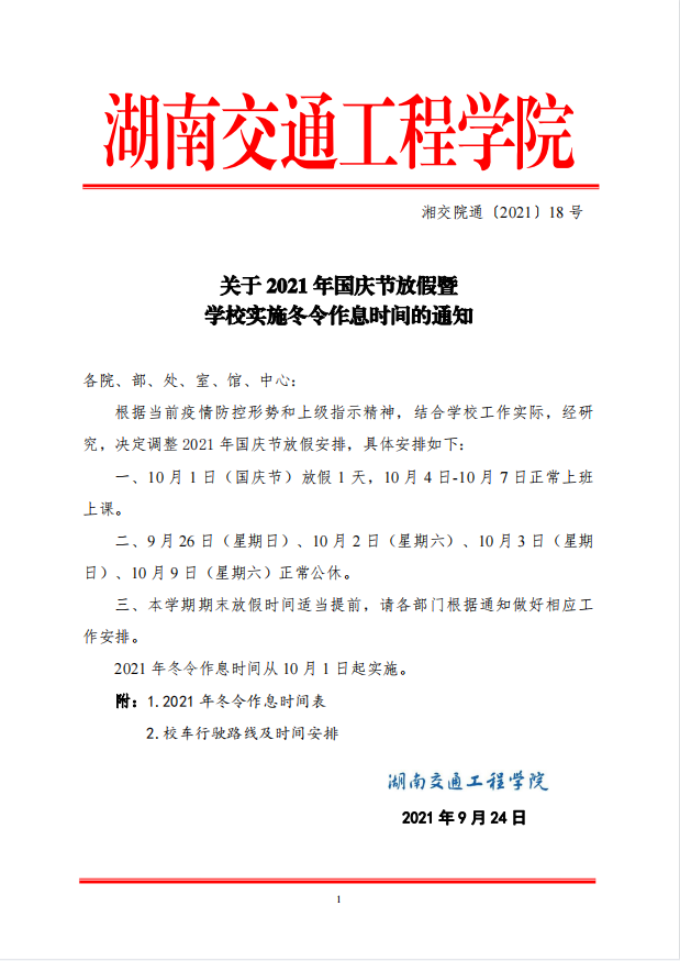 關(guān)于2021年國(guó)慶節(jié)放假暨學(xué)校實(shí)施冬令作息時(shí)間的通知