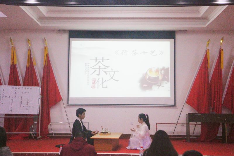 比賽中途,現(xiàn)場觀眾搶答題目贏禮品的互動將氣氛推向了高潮。草堂書社社員劉心濤同學深情演唱《經(jīng)典詠流傳》, 歌聲動人心弦。同時,雅歌漢風社成員表演的《茶藝十式》, 讓我們感受到了中國茶道的禮儀之美。