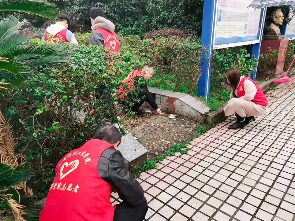 該校志愿者們自發(fā)開展公益清掃活動現(xiàn)場