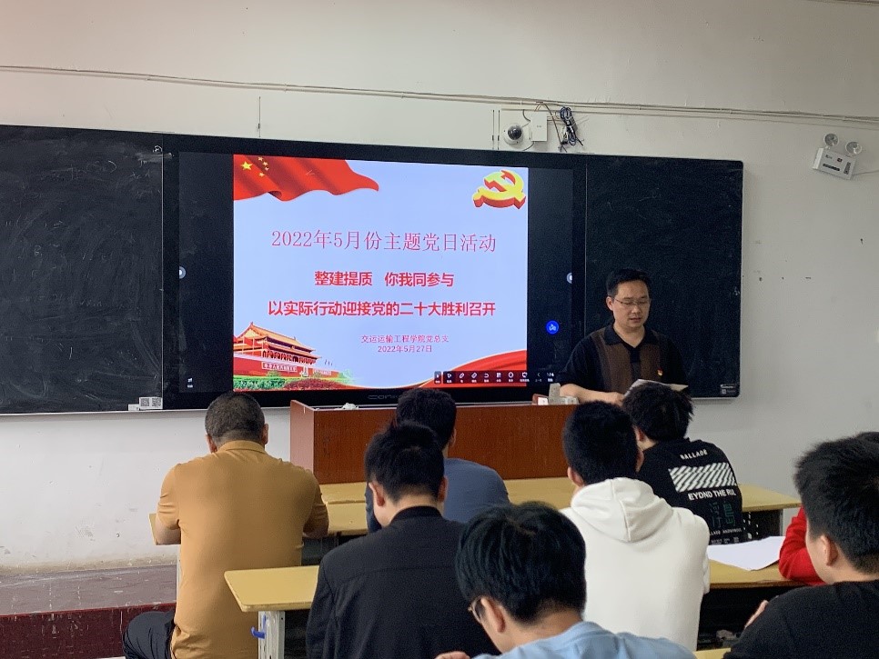 2022年5月27日13:30交通運輸工程學院黨總支在機電樓512教室開展 “整體提質,你我同參與”的主題黨日活動。本次活動由學生黨支部書記王剛主持。